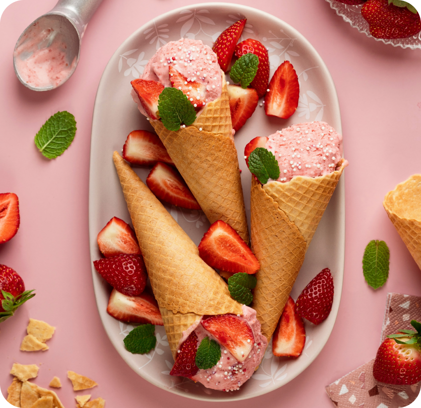 Our ice cream is crafted from oat milk and sustainable milk proteins, offering a rich, creamy texture without any animal products. We carefully select ingredients that are organic, non-GMO, and free from artificial additives, ensuring every bite is pure and wholesome.